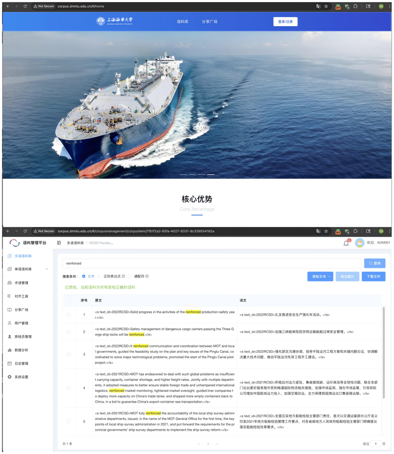 在高质量成果方面,学院教师共发表A、B类期刊论文23篇,研究主题涵盖语言学、翻译学、区域国别研究、人工智能与外语教育融合等方向;在商务印书馆等权威出版社出版学术著作5部,形成了一批具有持续学术影响力的研究成果。同时,学院完成软件著作权《海事语言及应用研究数据平台》1项,为海事语言研究与复合型航运人才培养提供了重要的数据与技术支撑。